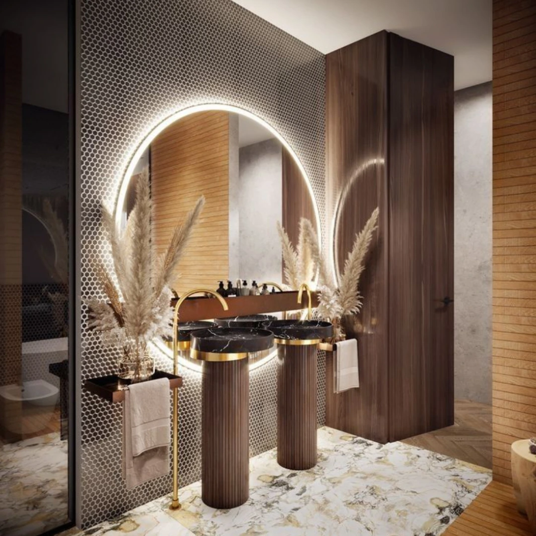 Elevate your daily routine with this exquisite round mirror. Its elegant, illuminated design casts a soft, ambient glow, transforming any bathroom into a luxurious, spa-like sanctuary. Perfect for both functional use and creating a sophisticated, modern aesthetic.